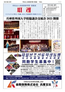 兵庫朝鮮学園では、各学校の情報をより多くの方に伝えるべく季刊紙を発行しております。 ウリハッキョで明るく楽しい児童・生徒の姿、日々発展する民族教育の様子をお伝えいたします。 2025年度 秋・冬合併号 2025年度 夏号 2025年度 春号 2024年度 冬号 2024年度 春号 2024年度 夏・秋合併号 2023年度 秋冬合併号 2023年度 夏号 2023年度 春号 2022年度 冬号 2022年度 春号 2021年度 夏号 2021年度 春号 2020年度 秋・冬号 2020年度 夏号 2019年度 冬号 2019年度 秋号 2019年度 夏号 2019年度 春号 2018年度 秋号 2018年度 夏号 2018年度 春号 2017年度 冬号 創刊号 > ※「2020年度春号」はCOVID-19の影響により発刊を中止しました。